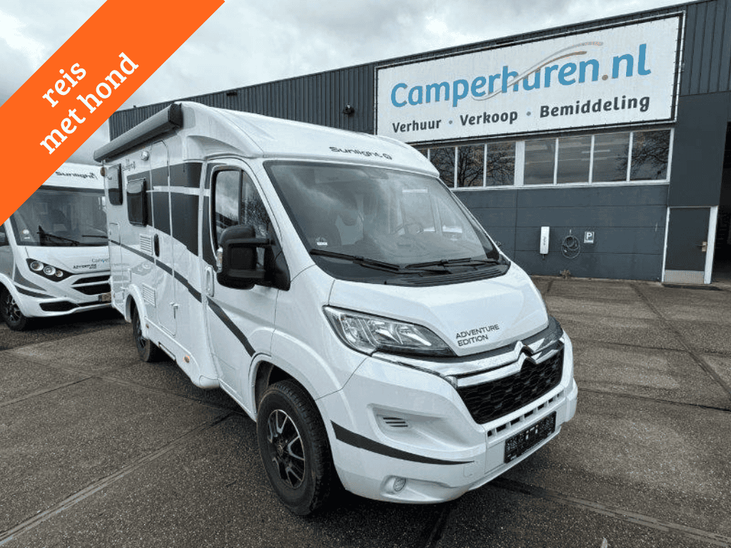 Kleine 2,5-persoons half-integraal camper met een tweepersoons dwars bed achterin, een verkort ombouwbed van de zithoek en een ruime berging. Daarnaast heeft dit type camper een standaard zit, een keuken in het midden, een toilet met douche, luifel en fietsenrek. Het maximum draaggewicht van het fietsenrek is 50kg.