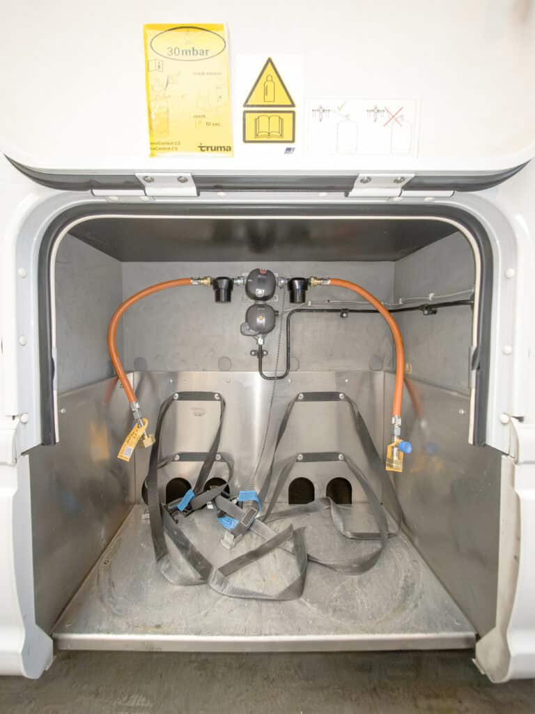 | Gasflessenkast voor 2 x 11 kg gasflessen | Gaskranen centraal en goed bereikbaar |