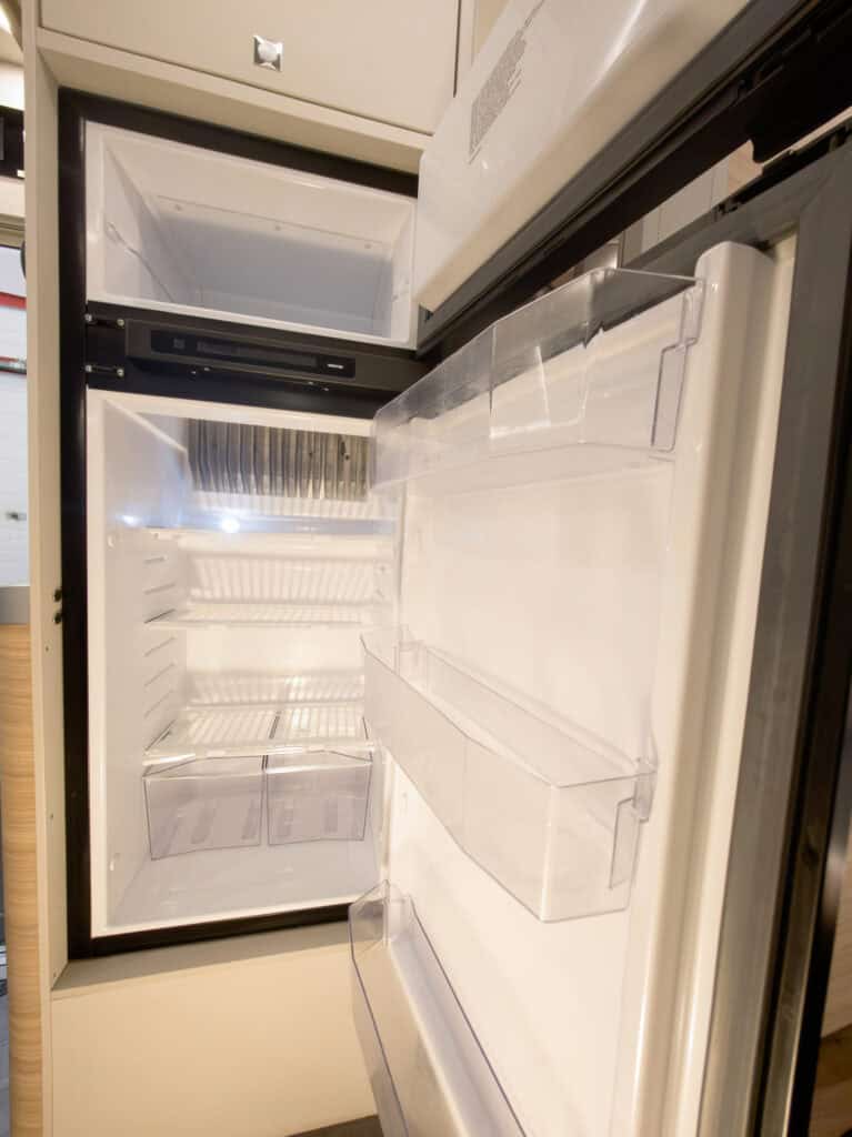 | Thetford 3-pits gasfornuis met geïntegreerde vlambescherming en glazen afdekking | Thetford koelkast 167 liter met 29 liter vriesvak |